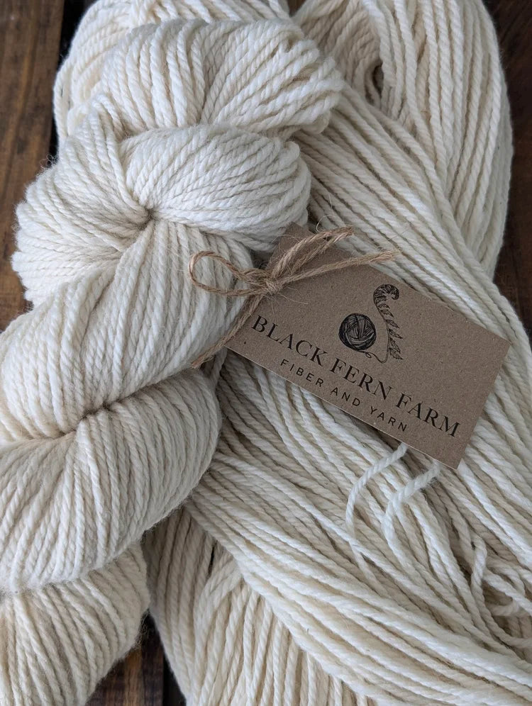 This is a 3-ply worsted weight blend of 50% Black Fern Farm Vermont alpaca and 50% NY State Merino wool. This is a super squishy, balanced yarn, perfect for sweaters, scarves, and even heavier socks for those cold Vermont nights. Each hank weighs 4 oz and is approximately 180 yards. It is milled locally in Berlin, Vermont.